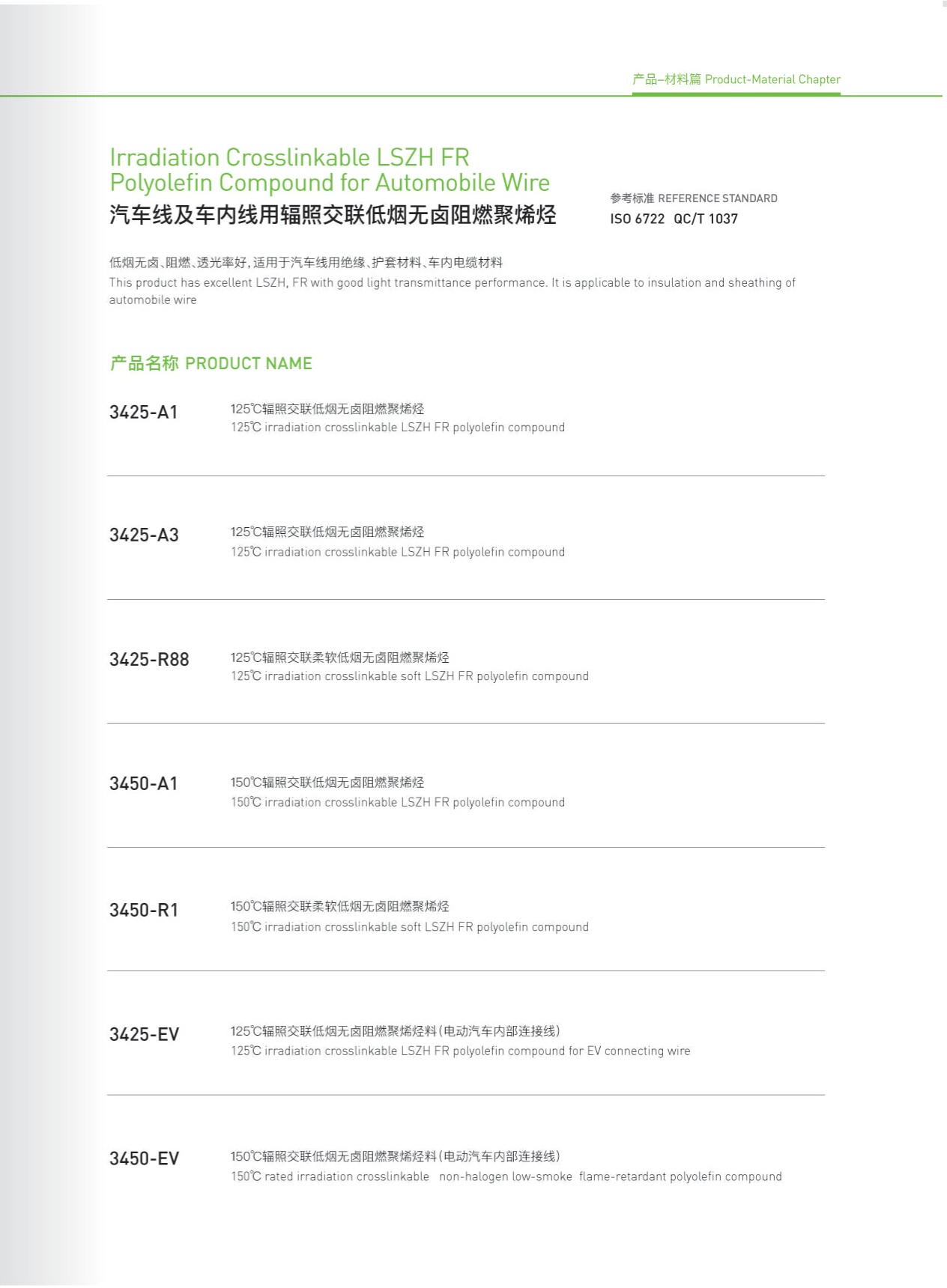 Irradiation Crosslinkable LSZH FR polyofin Compound for Automobike Wire