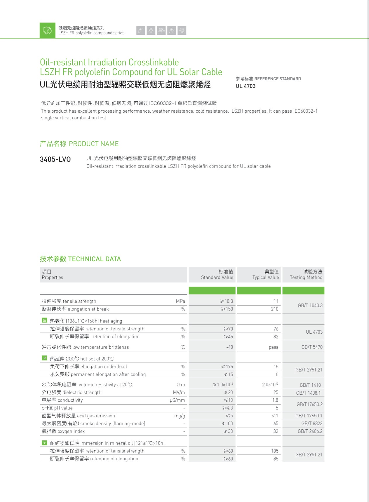 UL光伏電纜用耐油型輻照交聯(lián)低煙無鹵阻燃聚烯烴
