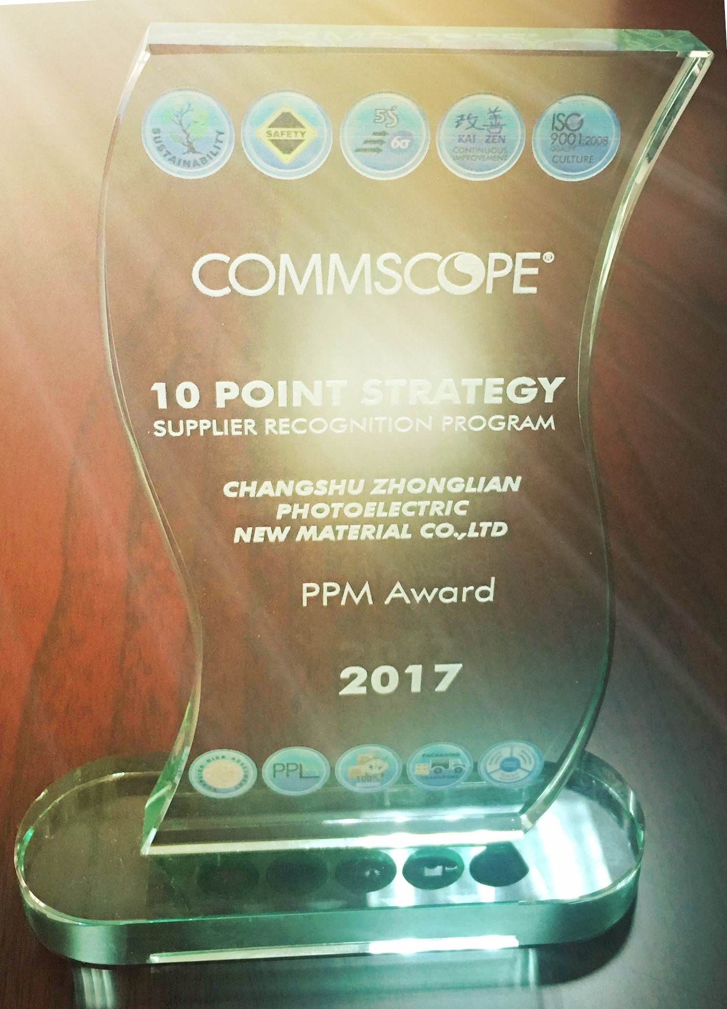 As a leading worldwide manufacturer of communication network products, CommScope, an American enterprise, is famous and acknowledged by its operation, quality, eco-friendly plan and logistics for plants around the world. Since the establishment of friendly relations of cooperation, CommScope and Zhonglian has been an important partner depends on recent year’s development. It is not easy to win an Excellent Supplier Title because of high requirements and evaluation method. CommScope pays close attention to 10 point strategic and Kaizen and grades to supplier each month. With the help of CommScope, Zhonglian achieves further improvement and promotion on quality control as well as production management etc. Zhonglian realized a 0 PPM of annual product return rate in recent years, provided 1-2 Kaizen on plant improvement each month, graded 8.5 average score on 10 point strategic and stood out from all APAC suppliers.