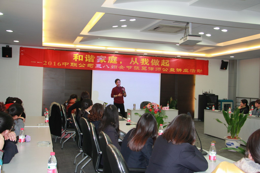 Zhonglian held a lecture with a topic of female on women’s day. Zhangyi, a lawyer from Shiji Tianhe Lawyer Office serves as the instructor together with lawyer Zhang Xuesong and Mr. Cui.