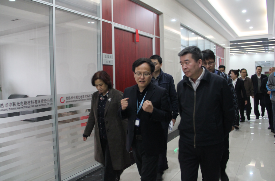 4月1日,蘇州人大常委會副主任周昌明一行在沙家浜鎮(zhèn)黨委副書記夏冬的陪同下,走訪考察了中聯(lián)光電。周昌明副主任一行參觀了中聯(lián)的各生產(chǎn)車間和檢測實驗室,中聯(lián)光電新材料有限責任公司總裁計文龍全程陪同。